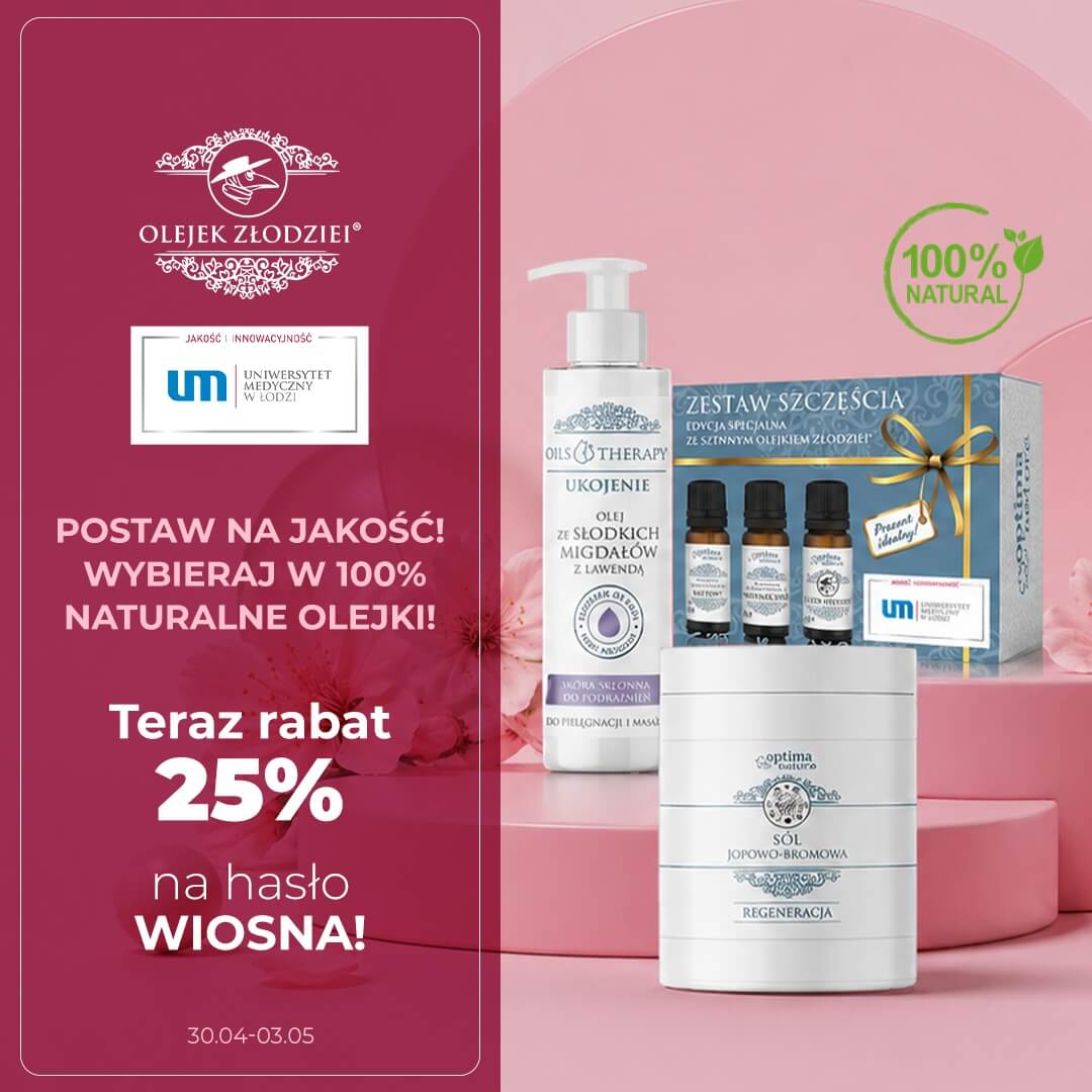 Aromaterapia to metoda skuteczna i bezpieczna, pod warunkiem, że wykorzystujesz wyłącznie pochodzące ze pewnego źródła i sprawdzone olejki eteryczne. Sklep Optima Natura to gwarancja aptecznej jakości olei i olejków. Nad stworzeniem naszej oferty pracują doświadczeni specjaliści. Ich wiedza pozwoliła na stworzenie kompozycji takich jak legendarny Olejek Złodziei® czy mieszanek z linii N-Active Oil ®, które wspomagają funkcje poznawcze mózgu i korzystnie wpływają na samopoczucie. Wybieraj z bogatej oferty olejków i olei w Optima Natura i ciesz się efektami terapii zapachowej. Dzięki szybkiej dostawie, nie będziesz długo czekać na aromatyczną kąpiel czy relaks przy kominku zapachowym.