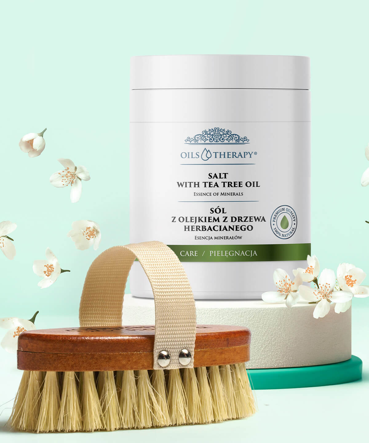 Zestaw Sól z Olejkiem z Drzewa Herbacianego + Szczotka (owalna)