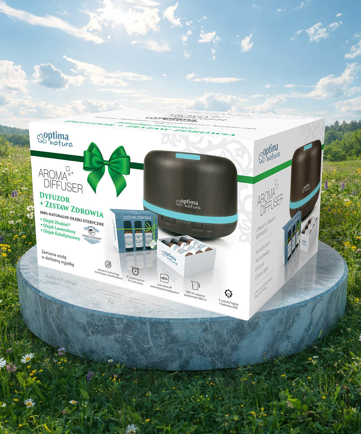 Dyfuzor ultradźwiękowy to wspaniały wybór dla każdego miłośnika aromaterapii! Zmienia wodę w delikatną mgiełkę działając jako nawilżacz i jonizator powietrza. Po dodaniu do wody kilku kropli olejku eterycznego Optima Natura pozwala cieszyć się mocą aromaterapii. W połączeniu z kolorowym światłem pozwoli stworzyć relaksującą atmosferę w Twoim otoczeniu. Wbudowane podświetlenie LED oraz nowoczesny design czynią z niego stylowy dodatek do każdego wnętrza.